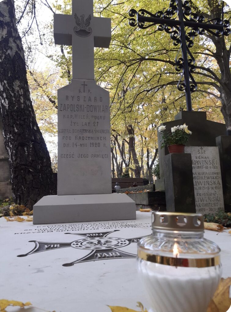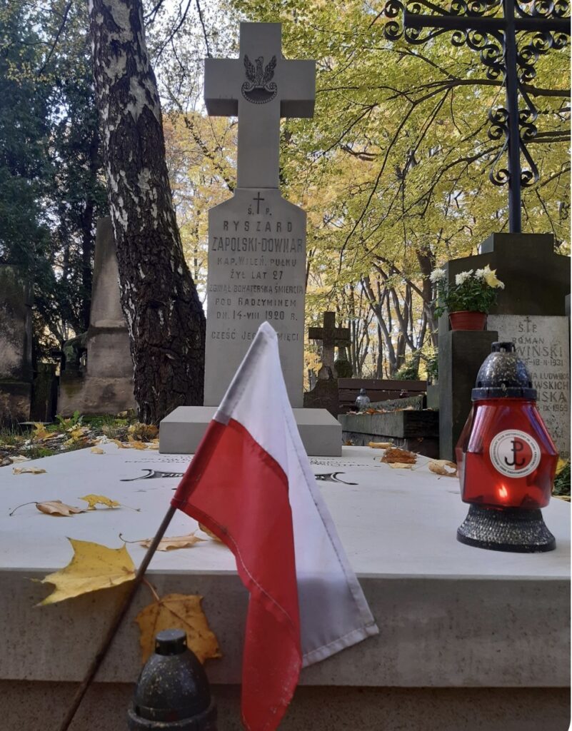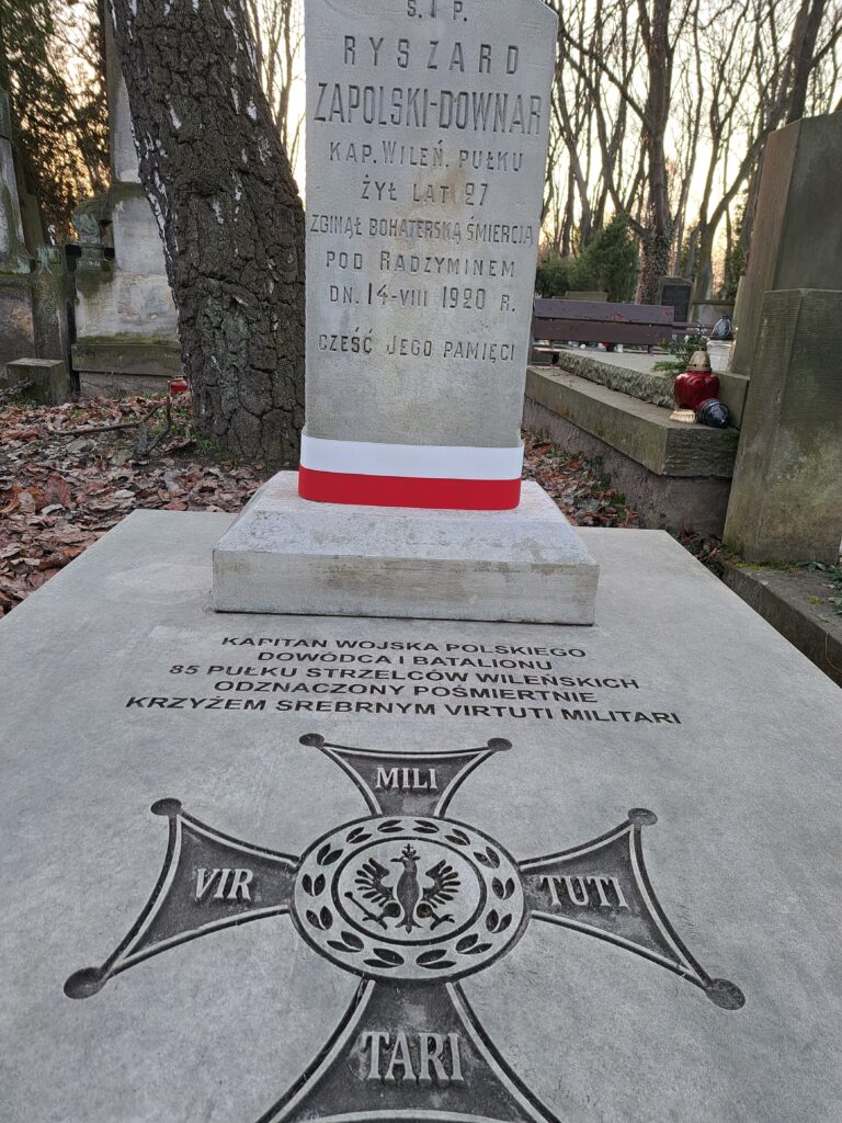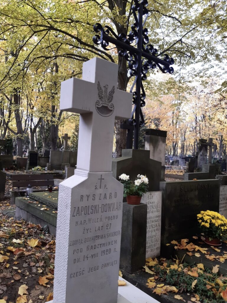 Grób kpt. Ryszarda Downar-Zapolskiego na Starych Powązkach, w kwaterze 234, trzeci grób na lewo od grobu studentów lwowskich poległych w wojnie polsko-bolszewickiej 1920 roku fot. Bogusława Sieroszewska, 2026