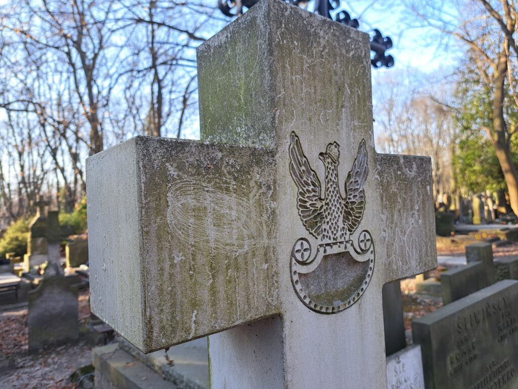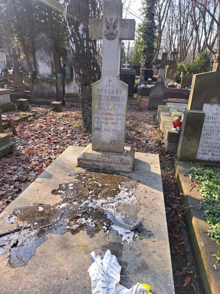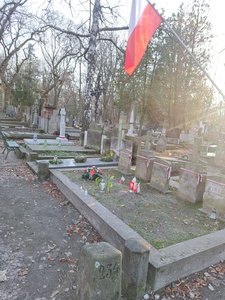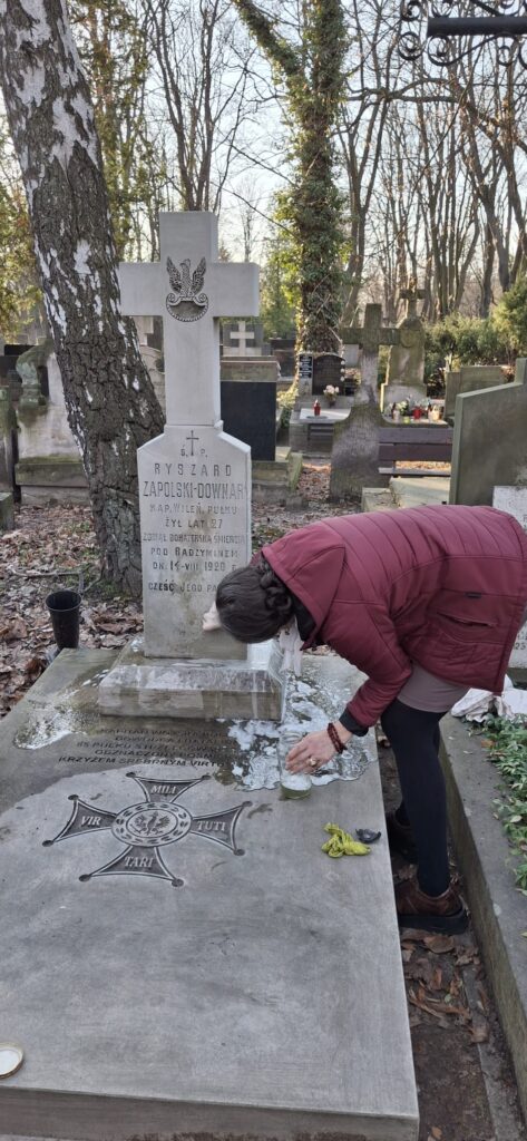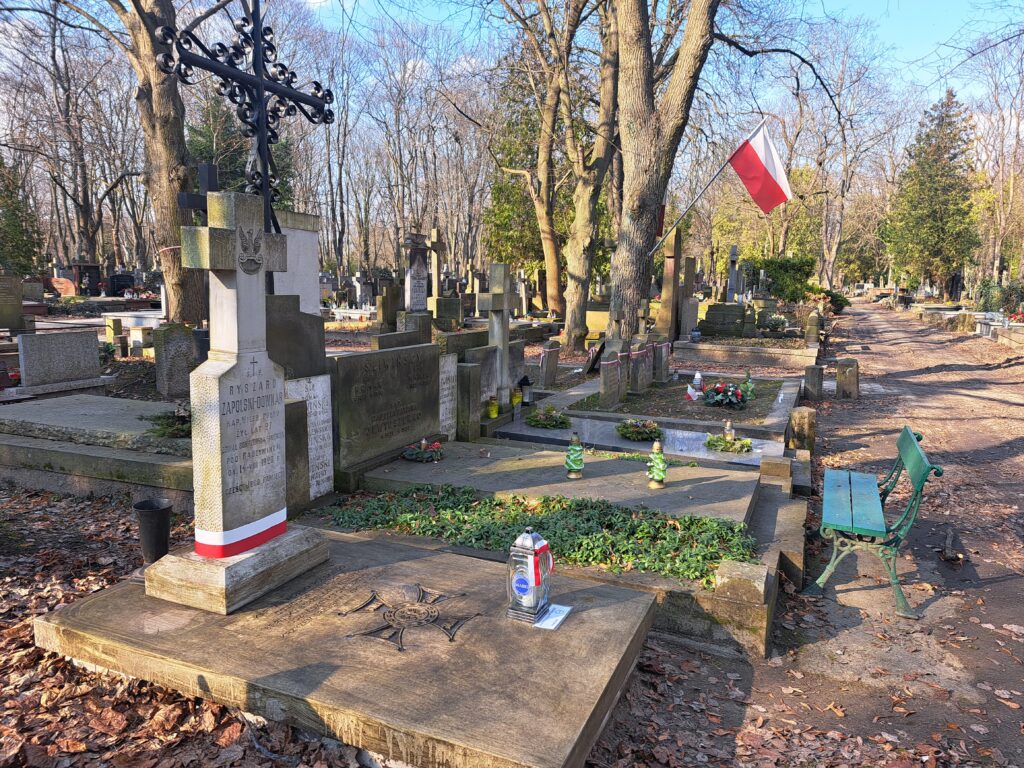 Grób kpt. Ryszarda Downar-Zapolskiego na Starych Powązkach, w kwaterze 234, trzeci grób na lewo od grobu studentów lwowskich poległych w wojnie polsko-bolszewickiej 1920 roku fot. Bogusława Sieroszewska, 2026