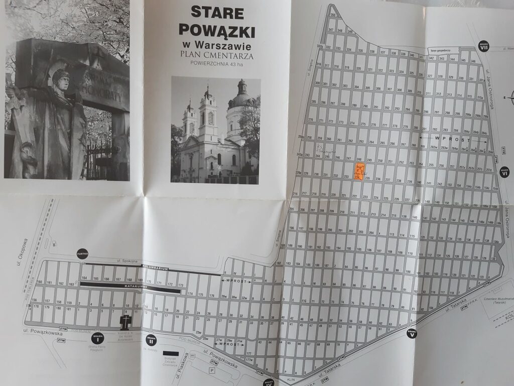 Grób kpt. Ryszarda Downar-Zapolskiego na Starych Powązkach, w kwaterze 234, trzeci grób na lewo od grobu studentów lwowskich poległych w wojnie polsko-bolszewickiej 1920 roku fot. Bogusława Sieroszewska, 2026