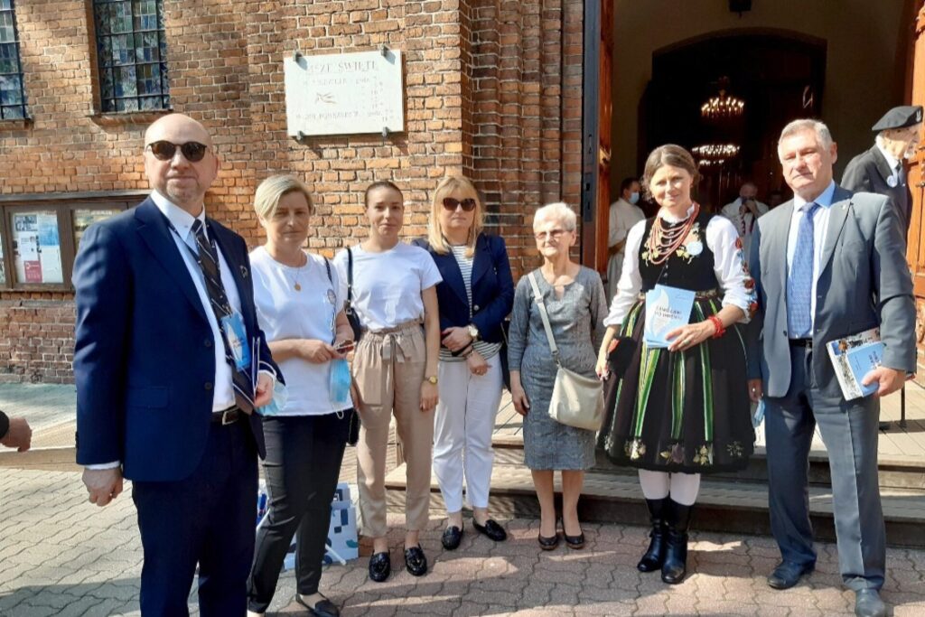 Stowarzyszenie Marki-Pustelnik-Struga z krewnymi Rodziny Banaszków – Jackiem Szewczakiem z siostrami bliźniaczkami i siostrzenicą na uroczystości odsłonięcia tablicy Zawołani po Imieniu – 15 września 2020 roku fot. archiwum Stowarzyszenia MPS