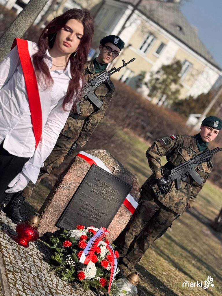 Dziękujemy samorządowi mareckiemu, że zachęcił młodzież mareckich szkół do przybycia na miejską uroczystość i jej uświetnienie przez wystawienie pocztów sztandarowych – Zespołu Szkół nr. 1 im. Jana Pawła II z siedzibą w Pałacyku Briggsów oraz Liceum Ogólnokształcącego im. Rotmistrza Pileckiego z siedzibą w Domu Katolickim w Markach. Ponadto, klasa mundurowa tejże szkoły wystawiła wartę honorową przy pomniku Zawołani po Imieniu. Poczet sztandarowy wystawiło również Stowarzyszenie Marki-Pustelnik-Struga z Bogusławą Sieroszewską w stroju mazowieckim oraz małżeństwem Elżbietą i Wiesławem Kosakowskimi z Marek-Zieleńca.