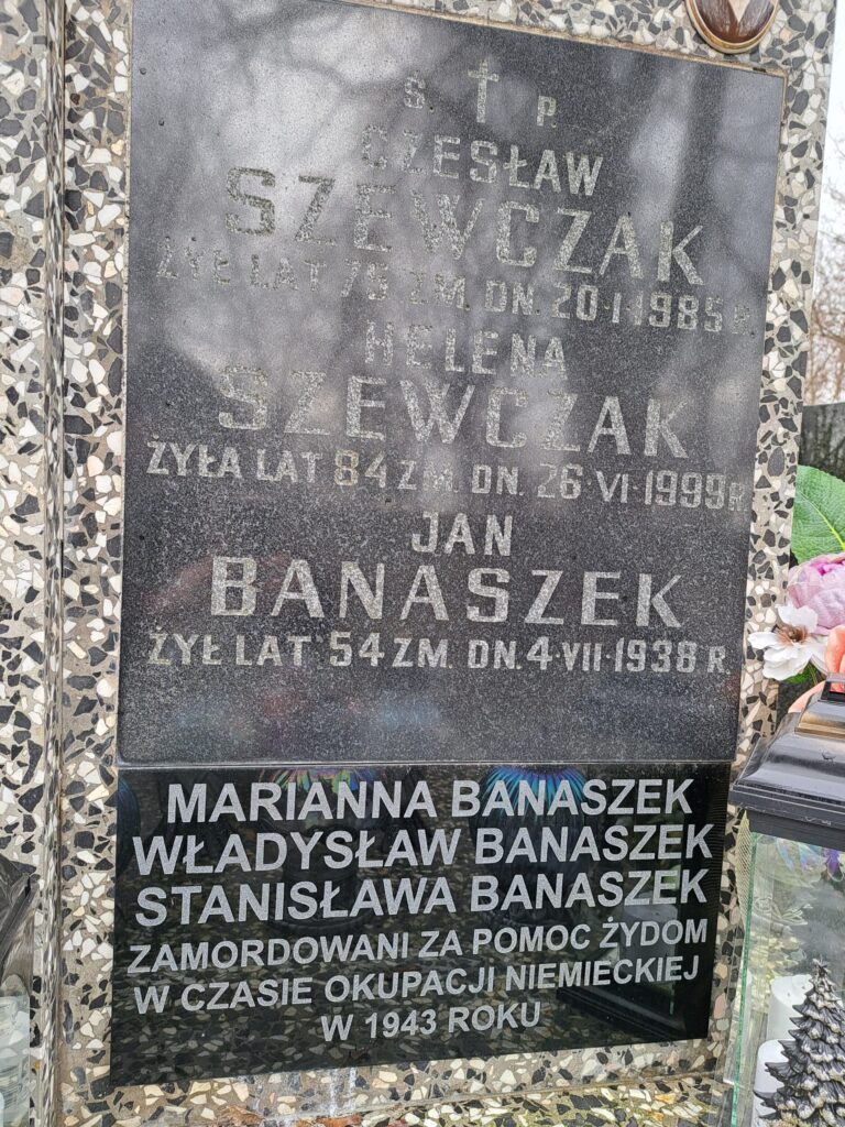 Tablica na dziedzińcu kościoła parafii św. Izydora, odsłonięta przez Instytut Pileckiego 15 września 2020 r., upamiętnienia Rodzinę Banaszków – Mariannę, l.50 oraz jej dzieci – Władysława, l.20 i Stasię, l.17 zamordowanych w Markach w 1943 roku za ukrywanie przez kilkanaście miesięcy żydowskiego małżeństwa Feldszuhów z nastoletnią córką pianistką, uciekinierów z getta warszawskiego. Marianna została rozstrzelana przez Niemców na progu własnego domu przy ulicy Zabawnej w Markach-Pustelniku, tuż po przyjściu z porannej mszy św. w kościele parafii św. Izydora. Dorosłe już dzieci Marianny – Władysław i Stasia – zostały aresztowane i zaciągnięte nad rzekę Długą w Markach, a następnie rozstrzelane przez niemieckich żandarmów na terenie cegielni Jana Mańka „Krzaka” i tam zakopane do dołów śmierci. Po wojnie ciała zamordowanych mieszkańców Marek, dzięki staraniom rodziny, zostały ekshumowane i spoczęły w rodzinnym grobie na cmentarzu parafialnym św. Izydora w Markach przy ulicy Bandurskiego. Trzecie dziecko Marianny – Wiktoria, l. 19, wróciła tego dnia z Warszawy, gdzie pracowała, dowiedziała się o rozstrzeleniu matki Marianny, zakopaniu jej ciała przez sąsiadów w ogrodzie, usłyszała o uprowadzeniu przez żandarmów rodzeństwa -Władka i Stasi. Ostrzeżona przez sąsiadów, wyjechała czym prędzej do Warszawy i słuch po niej zaginął. Mówiono, że została zamordowana również przez Niemców w bliżej nieznanych okolicznościach.