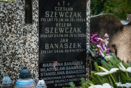 Grób Rodziny Banaszków na cmentarzu parafialnym św. Izydora w Markach, niedaleko wschodniego muru cmentarza – 24 marca 2022 r.
